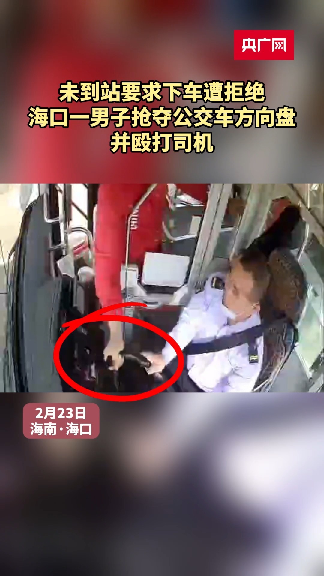未到站要求下車遭拒絕 海口一男子搶奪公交車方向盤并毆打司機(jī)